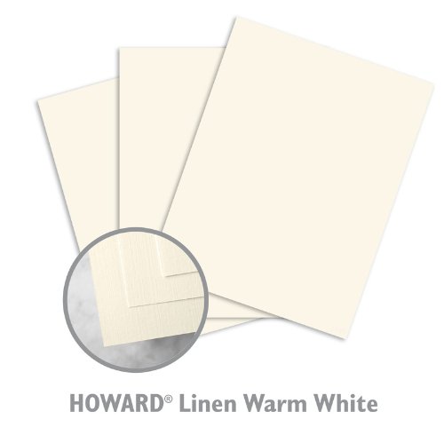 Cheap price deals HOWARD Linen Warm White Paper 2000Carton HOWARD Linen Warm White Paper - 8 1/2 x 11 in 80 lb Cover Linen 30% Recycled - 2000/Carton. Fine textured papers are sought out by those who wish to communicate something more than just words and images. And linen texture has long been the standard for communicating taste and class. HOWARD Linen offers the tactile and visual interest that makes annual reports pop, business correspondence sing, and brochures beam. When this paper is closely viewed, one can see the warp and weave - even the slight irregularities that makes actual linen so appealing. As a backdrop for your printing, it provides a very interesting - yet soft-spoken - texture. Often the first choice for business cards, HOWARD Linen is also excellent for report covers, folders, menus,envelopes personal and business correspondence and stationery packages. And because the writing weight is designed for desktop use, it will print perfectly on your office laser or ink-jet. HOWARD Linen is also the perfect choice for embossing, yielding spectacular results. Bright White has a brightness level of 96 for the formal look of a starched white shirt, and the lively ivory has a softer, warmer, more natural appeal. And, HOWARD Linen is manufactured acid free with archival properties for longer life. When you're looking for a little added flair, try HOWARD Linen?it's patterned for success.